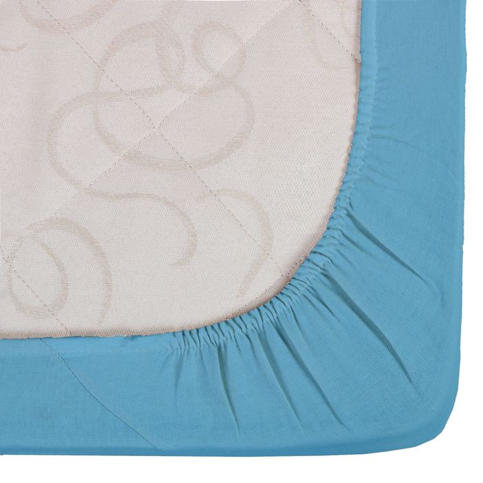 По углам предусмотрена эластичная резинка, изделие надёжно крепится на матрасе, не сползает и не сбивается.