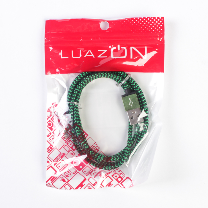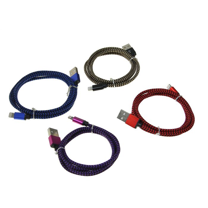 Провод для зарядки и передачи данных Luazon USB - iPhone 5/6/7, 1м, текстильная оплетка, микс
