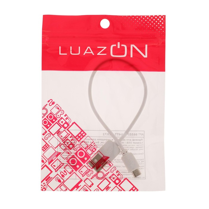 Провод для зарядки и передачи данных Luazon USB - microUSB, 20см, белый 86557