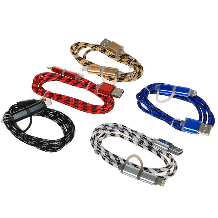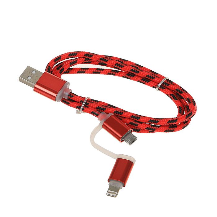 Провод для зарядки LuazON, LCC-91 USB - iPhone 5-X/microUSB, штекер металл, 1м, микс
