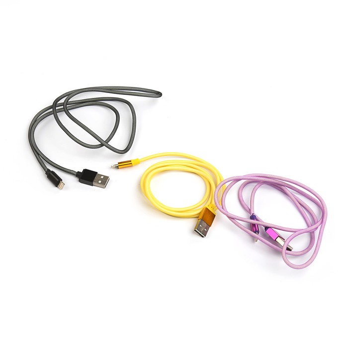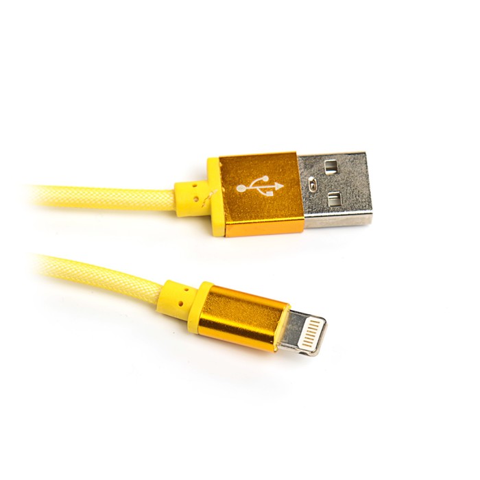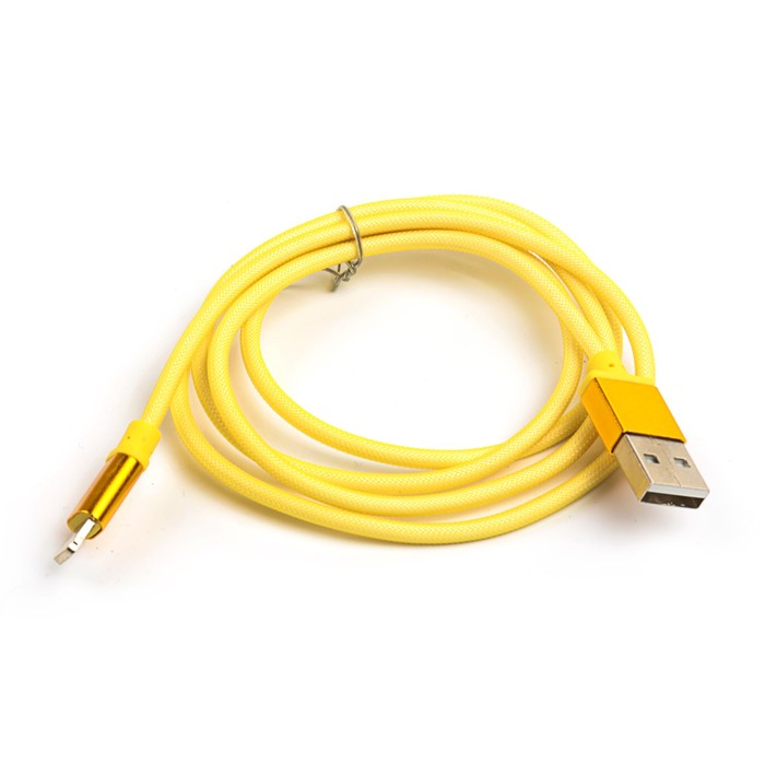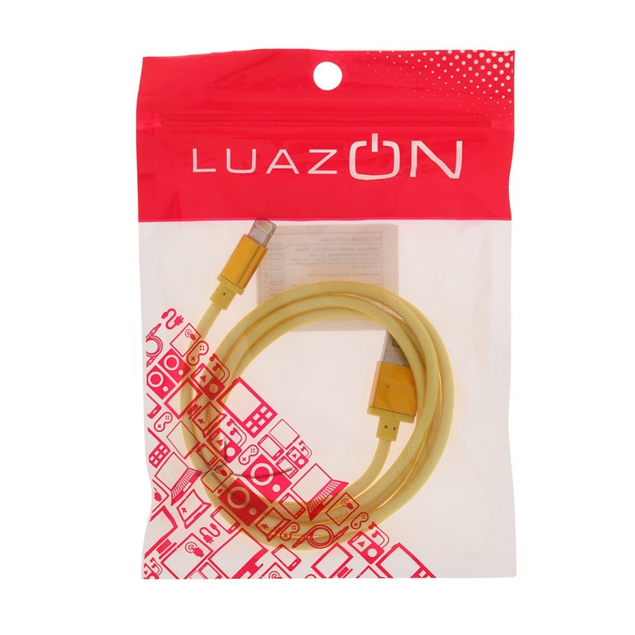 Провод для зарядки LuazON USB - iPhone 5,6,7 пласт.армирование, штекер металл, 1м, микс