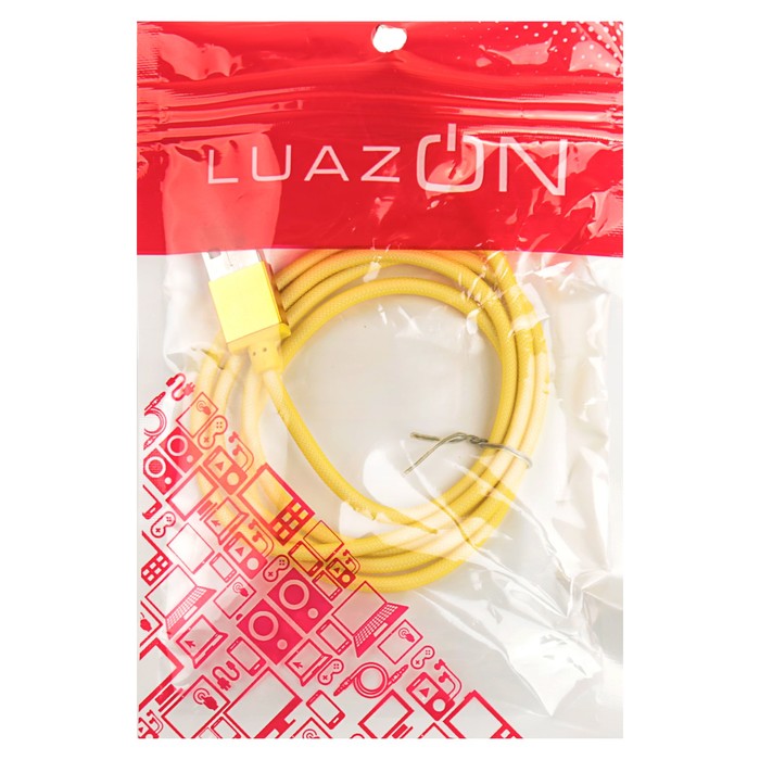 Провод для зарядки LuazON подойдёт для смартфонов iPhone 5, 6, 7. На одном конце у него коннектор Lightning, а на втором — штекер USB для подключения к компьютеру или сетевому адаптеру с соответствующим гнездом.
