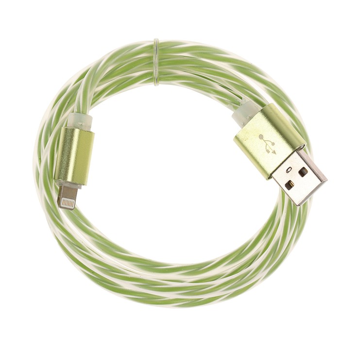 Провод для зарядки LuazON USB - iPhone 5,6,7 прозрачный силикон, штекер металл, 1м, микс
