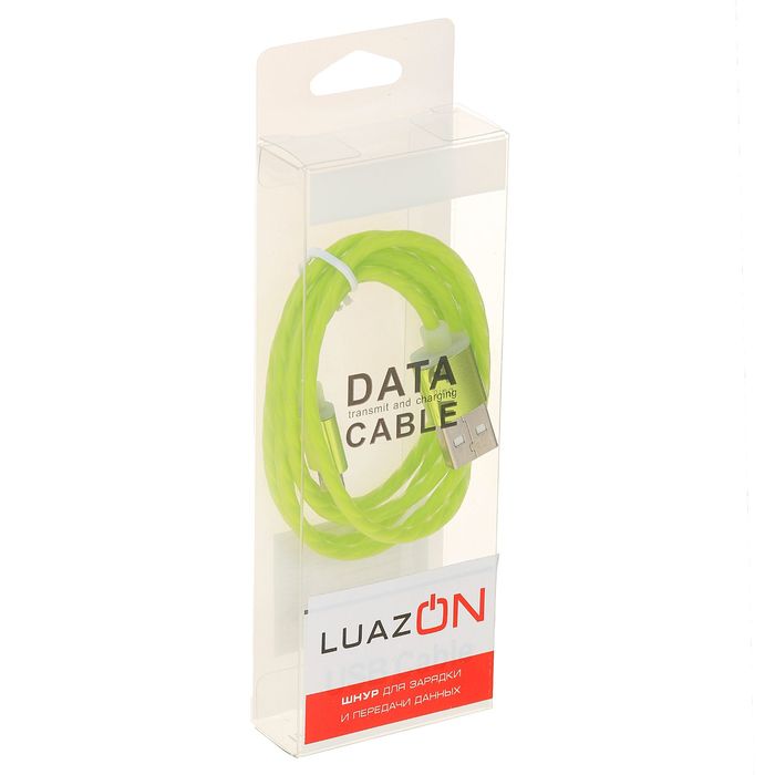 Провод для зарядки LuazON подойдёт для смартфонов iPhone 5, 6, 7. На одном конце у него коннектор Lightning, а на втором — штекер USB для подключения к компьютеру или сетевому адаптеру с соответствующим разъёмом.
