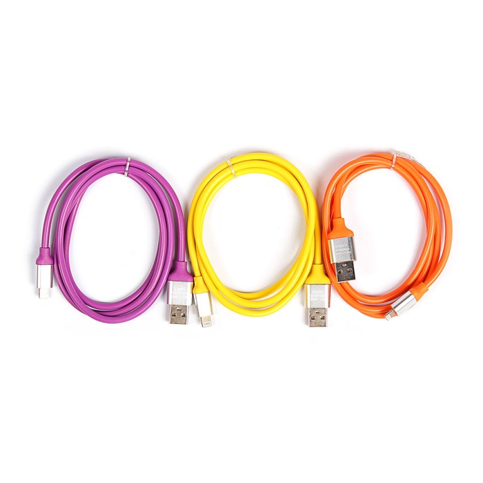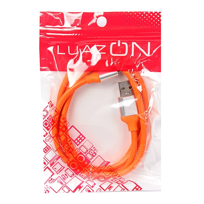 Провод для зарядки LuazON USB - iPhone 5,6,7 силикон, штекер металл, 1м, микс