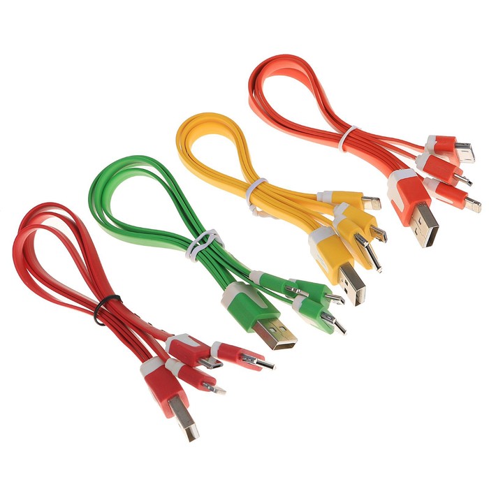 Провод USB - 3 в 1, для iPhone 4/5/microUSB, плоский, МИКС
