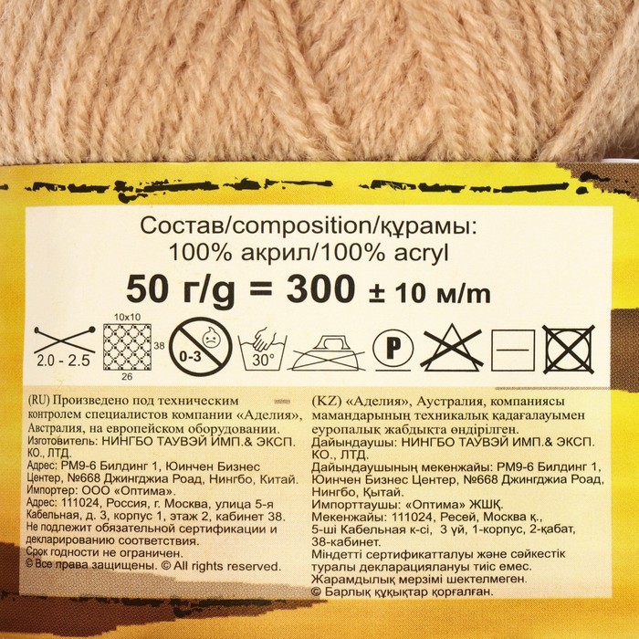 Пряжа "Adelia Natali" 100% акрил 300м/50гр (17 т.бежев,)