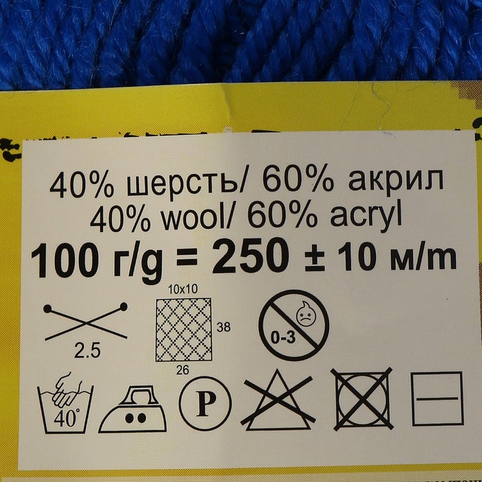 Пряжа "Adelia Olivia" 60% акрил, 40% шерсть 250м/100гр (07 синий)