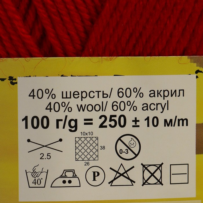 Пряжа "Adelia Olivia" 60% акрил, 40% шерсть 250м/100гр (11 красный)