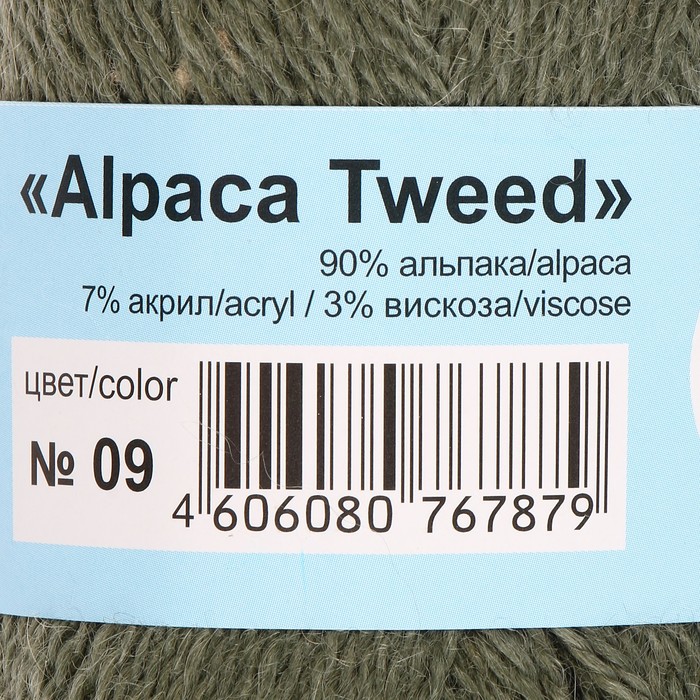 Пряжа "Alpina Alpaca Tweed" 90% альпака, 7 % акрил, 3% вискоза 300м/50г (09 т. зелёный)