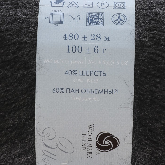 Пряжа "Ангорская тёплая" 40% шерсть, 60% акрил 480м/100гр (435 антрацит)