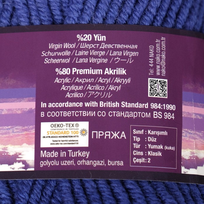 Пряжа "Arctic" 40% шерсть, 60% акрил 100м/100гр (6063 василек)