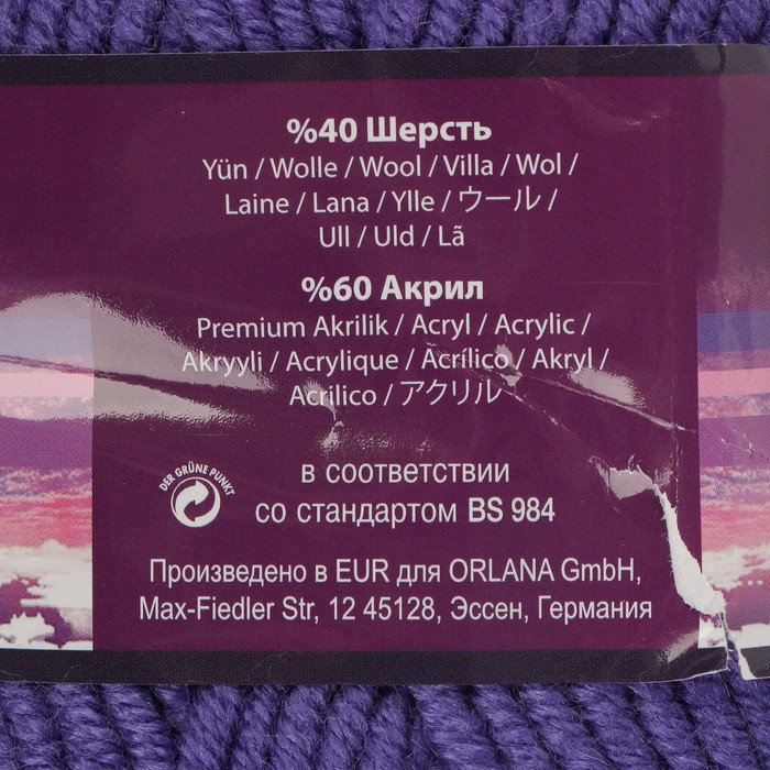 Пряжа "Arctic" 40% шерсть, 60% акрил 100м/100гр (6074 фиолетовый)