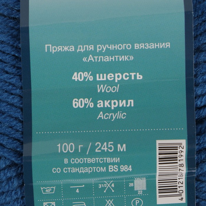 Пряжа "Atlantic" 40% шерсть, 60% акрил 245м/100гр (1264 яр. голубой)
