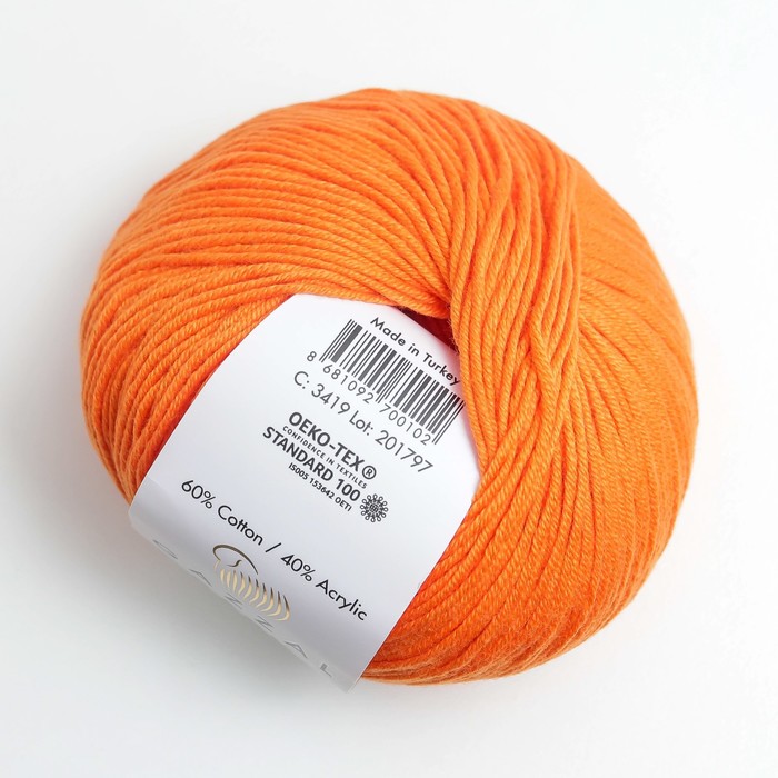 Пряжа "Baby Cotton" 60% хлопок, 40% полиакрил 165м/50гр (3419 апельсин)
