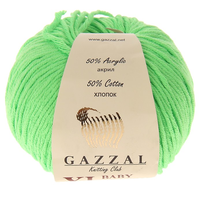 Пряжа "Baby Cotton XL" 50% хлопок, 50% полиакрил 105м/50гр (3427 неж. зелен)