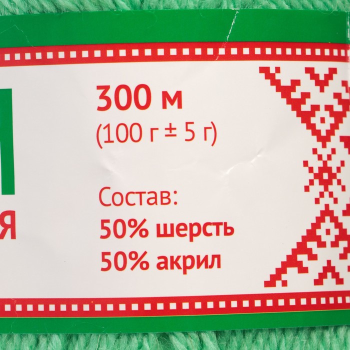 Пряжа "Белорусская" 50% шерсть, 50% акрил 300м/100гр (025 мята)
