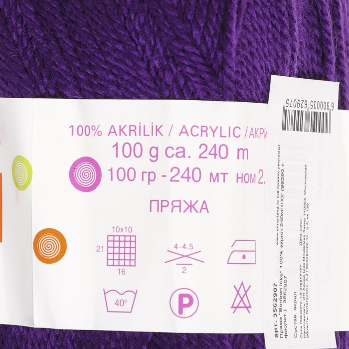 Пряжа "Bonbon luks" 100% акрил 240м/100г (98290 т. фиолет.)