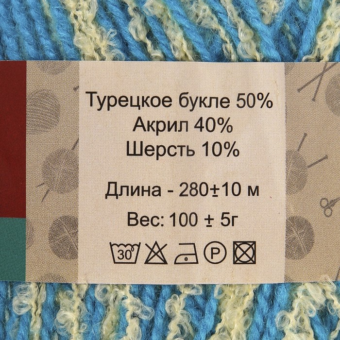 Пряжа "Букле" 40% акрил, 50% букле, 10% шерсть% 280м/100гр (Бирюза)