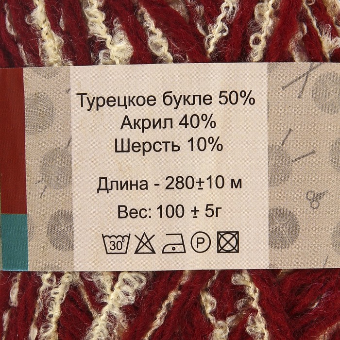 Пряжа "Букле" 40% акрил, 50% букле, 10% шерсть% 280м/100гр (Вишня)