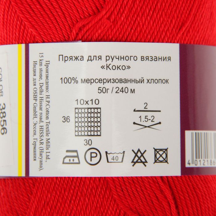 Пряжа "Coco" 100% мерсеризованный хлопок 240м/50гр (3856 красный)