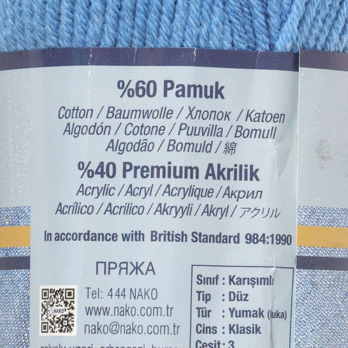 Пряжа "Denim" 60% хлопок, 40% акрил 200м/100гр (11578 яр. голубой)