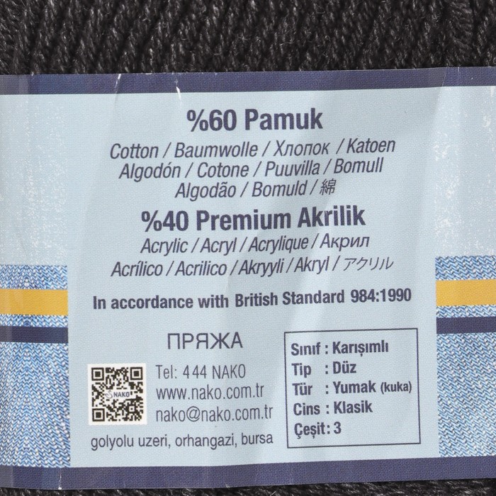 Пряжа "Denim" 60% хлопок, 40% акрил 200м/100гр (217 черный)
