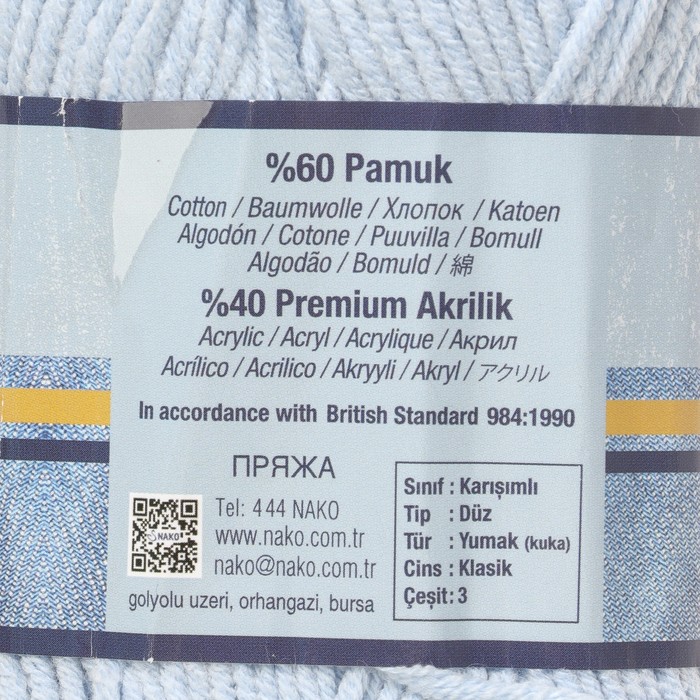 Пряжа "Denim" 60% хлопок, 40% акрил 200м/100гр (6952 голубой)
