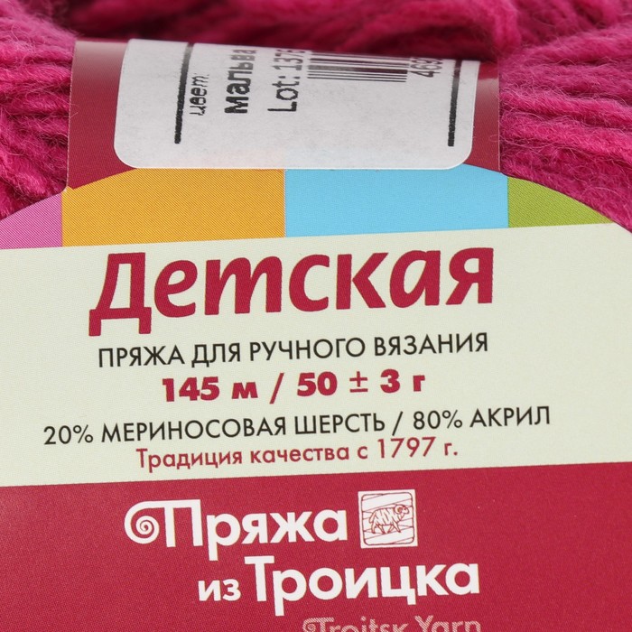 Пряжа "Детская" 20% меринос.шерсть, 80% акрил 145м/50гр (1018 мальва)