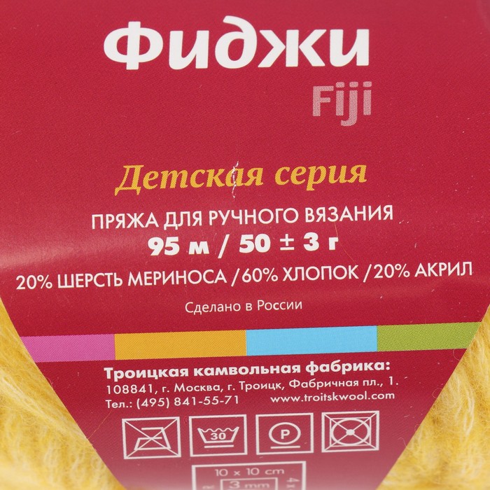 Пряжа "Фиджи" 20% меринос. шерсть, 60% хлопок, 20% акрил 95м/50гр (8361 меланж желтый)