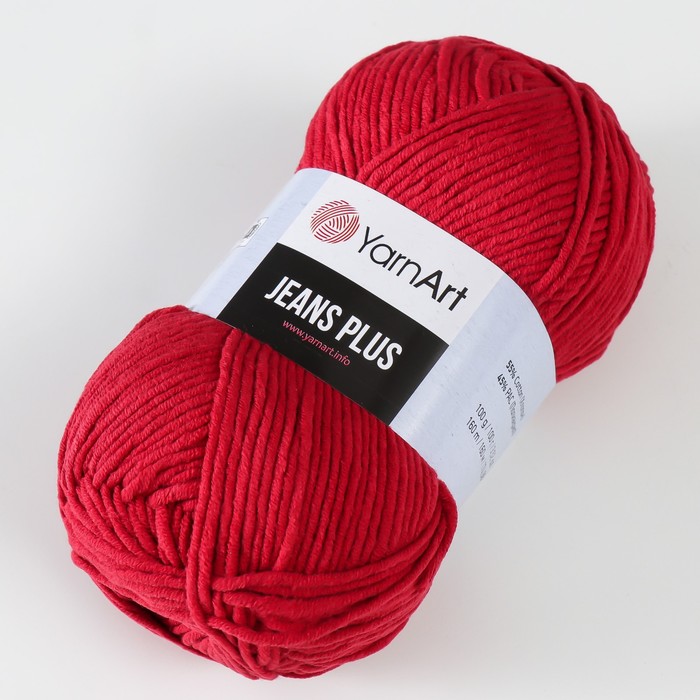 Пряжа "Jeans plus" 55% хлопок, 45% акрил 160м/100гр (51 красный)