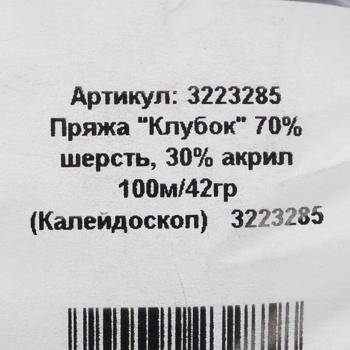 Пряжа "Клубок" 70% шерсть, 30% акрил 100м/42гр набор 10шт (Калейдоскоп)