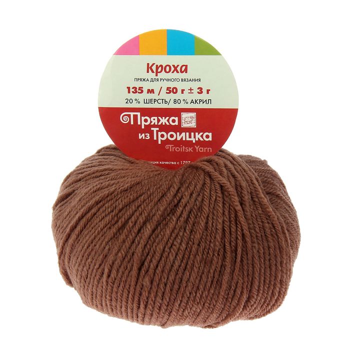 Пряжа "Кроха" 20% шерсть, 80% акрил 135м/50гр (1251, молочный шоколад)
