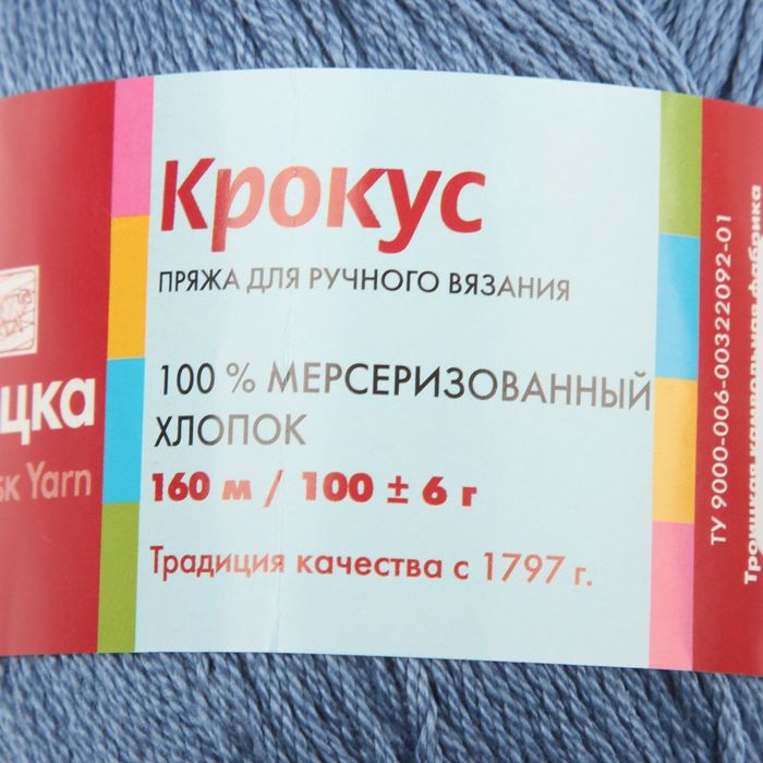 Пряжа "Крокус" 100% мерсеризованный хлопок 160м/100гр (2648, светлый гиацинт)
