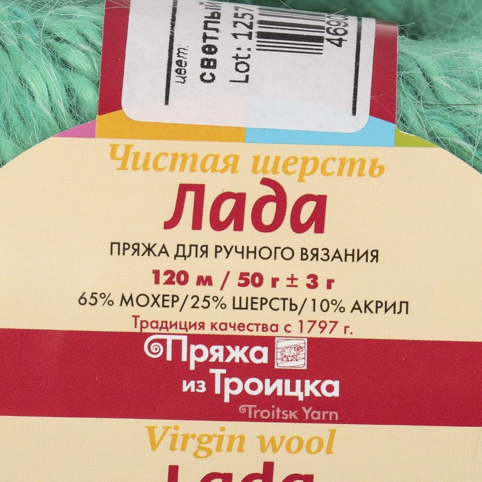Пряжа "Лада" 65% мохер, 25% шерсть, 10% акрил 120м/50гр (0057 св. салат)