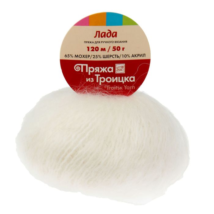 Пряжа "Лада" 65% мохер, 25% шерсть, 10% акрил 120м/50гр (0230, отбелка)