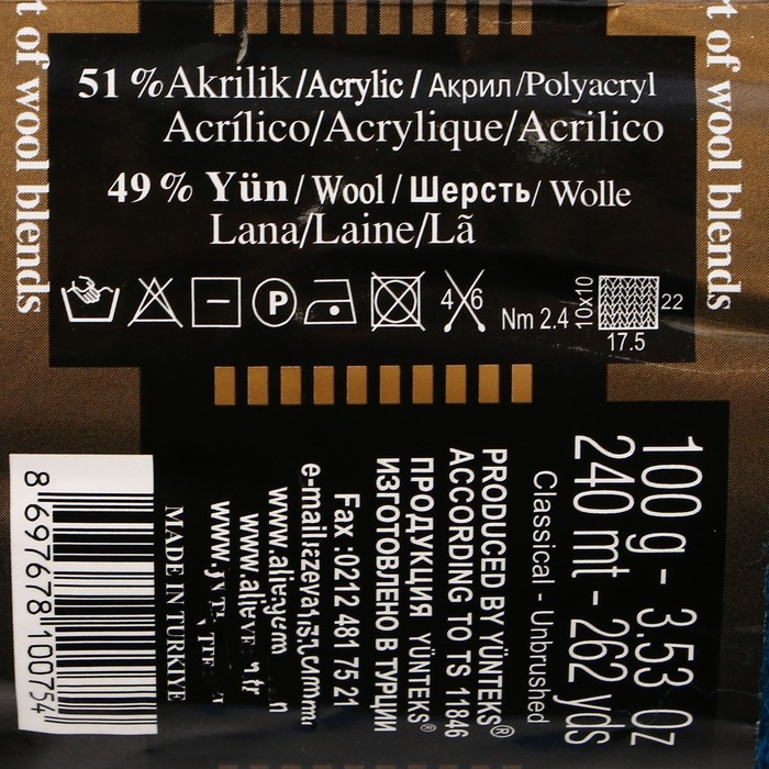 Пряжа "Lanagold" 51% акрил, 49% шерсть 240м/100гр (155 т. бирюзовый)