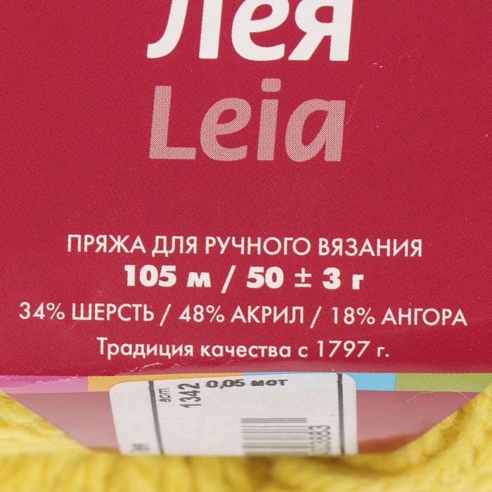 Пряжа "Лея" 34% шерсть, 48% акрил, 18% ангора 105м/50г (1342 лимон)