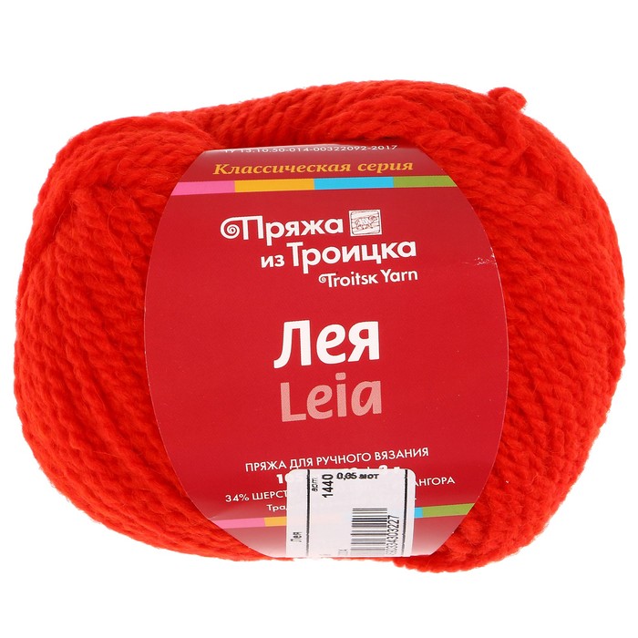 Пряжа "Лея" 34% шерсть, 48% акрил, 18% ангора 105м/50г (1440 алый)