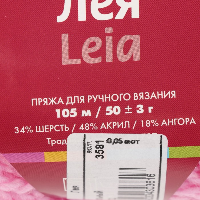 Пряжа "Лея" 34% шерсть, 48% акрил, 18% ангора 105м/50г (3581 миндальный)