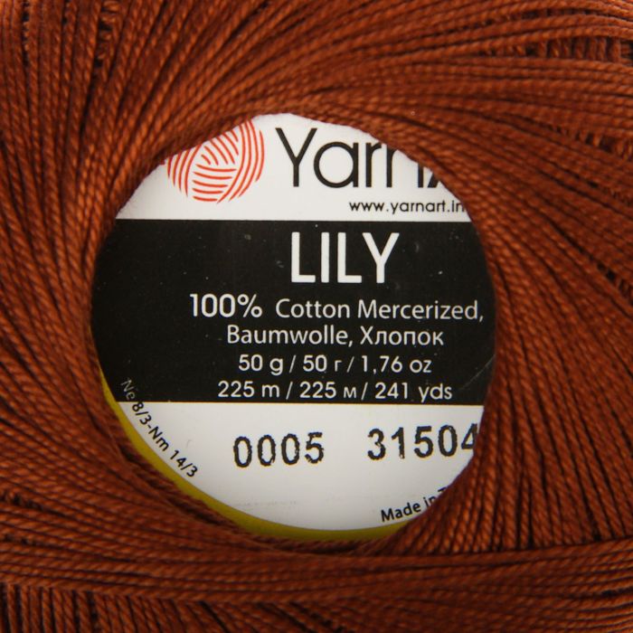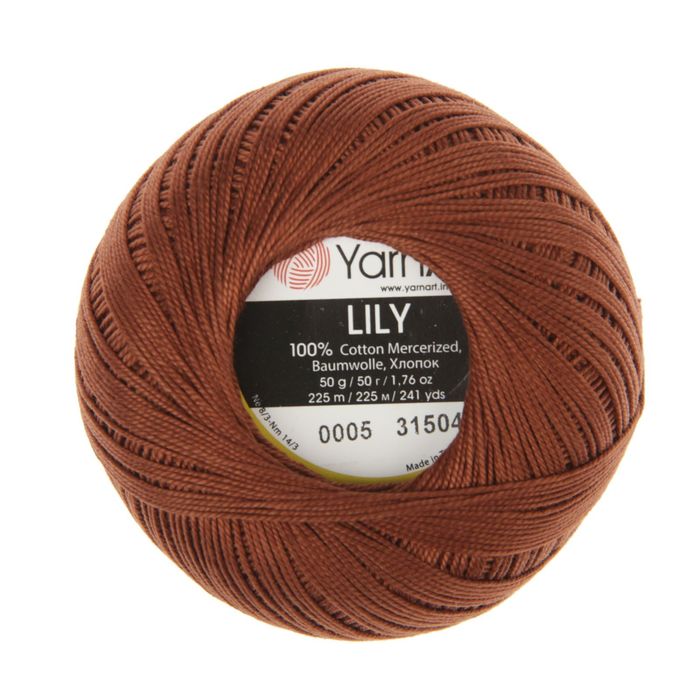 Пряжа "Lily" 100% хлопок 225м/50гр (0005 коричневый)