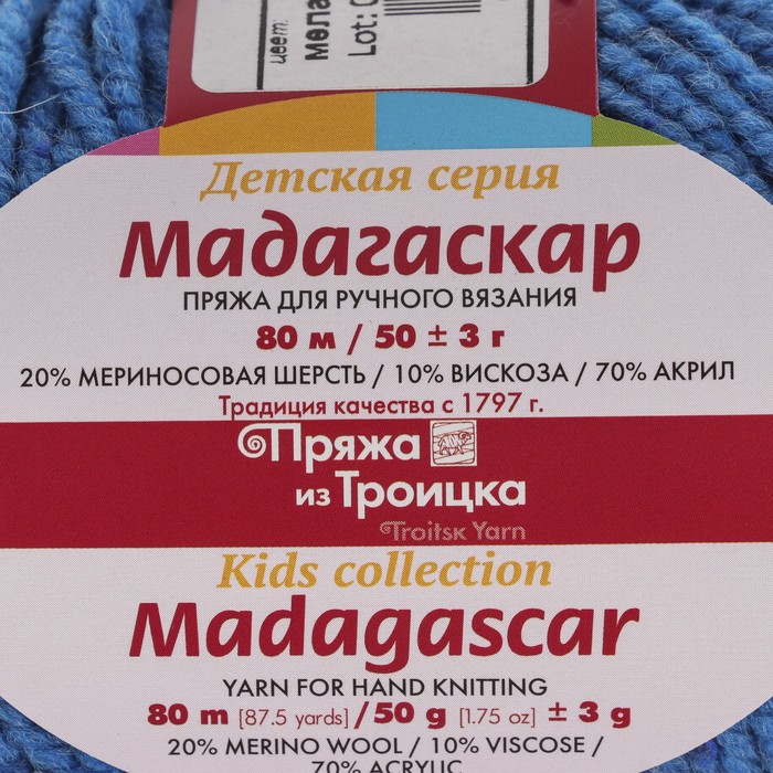 Пряжа "Мадагаскар" 20% меринос. шерсть, 10% вискоза, 70% акрил 80м/50гр (8373 аквамарин)