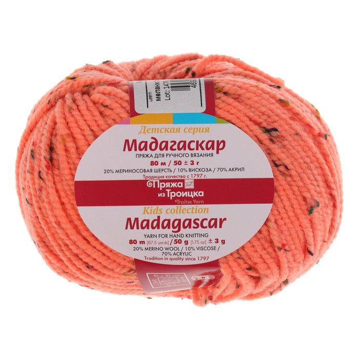 Пряжа "Мадагаскар" 20% меринос. шерсть, 10% вискоза, 70% акрил 80м/50гр (8375 оранж.)
