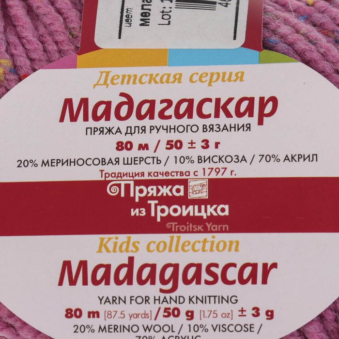 Пряжа "Мадагаскар" 20% меринос. шерсть, 10% вискоза, 70% акрил 80м/50гр (8382 св. фуксия)