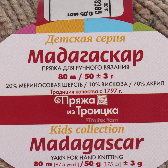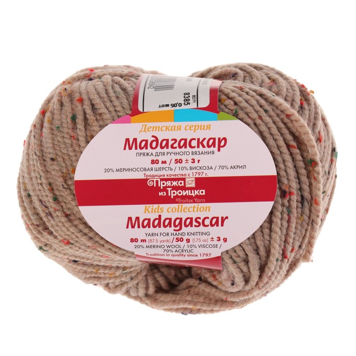 Пряжа "Мадагаскар" 20% меринос. шерсть, 10% вискоза, 70% акрил 80м/50гр (8385 фрез)