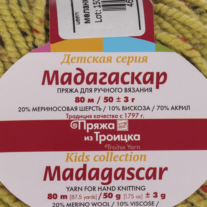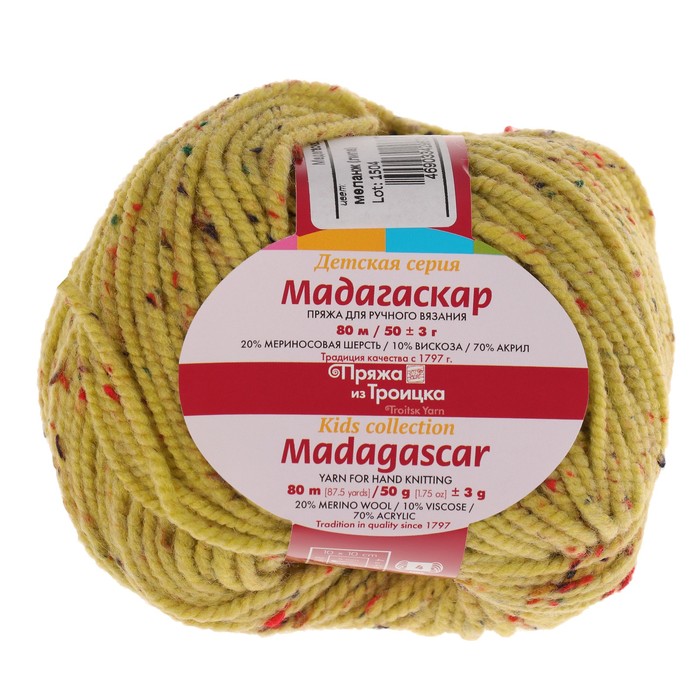 Пряжа "Мадагаскар" 20% меринос. шерсть, 10% вискоза, 70% акрил 80м/50гр (8388 липа)