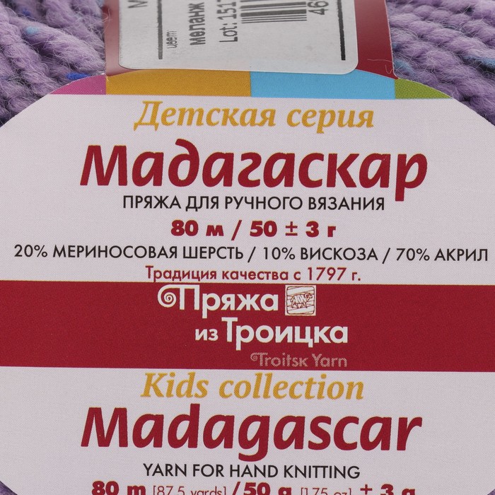 Пряжа "Мадагаскар" 20% меринос. шерсть, 10% вискоза, 70% акрил 80м/50гр (8393 св. сирень)