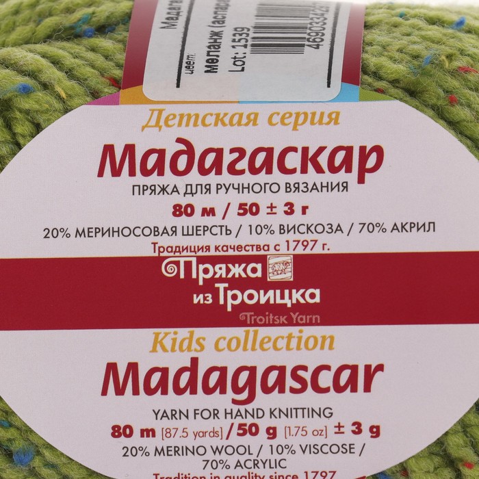 Пряжа "Мадагаскар" 20% меринос. шерсть, 10% вискоза, 70% акрил 80м/50гр (8395 аспарагус)