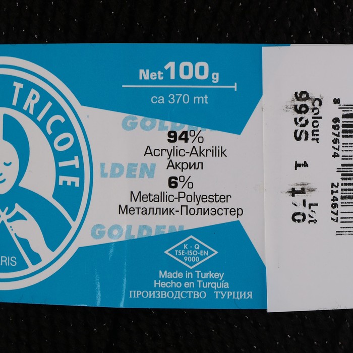 Пряжа Madame Tricote Paris "GOLDEN" 94% акрил, 6% метал/370м/100гр (черный)