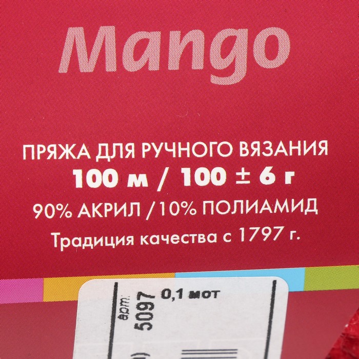 Пряжа "Манго" 90% акрил, 10% полиамид 100м/100гр (5097 мулине (красный/алый))